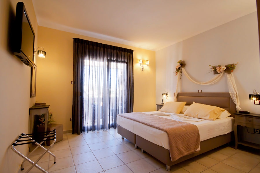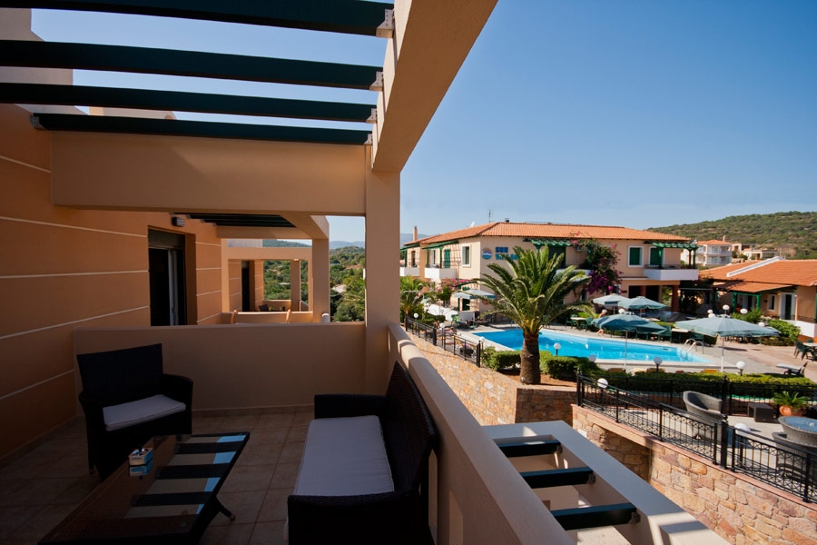 Opening to a balcony with sea and pool views, this split-level suite features: